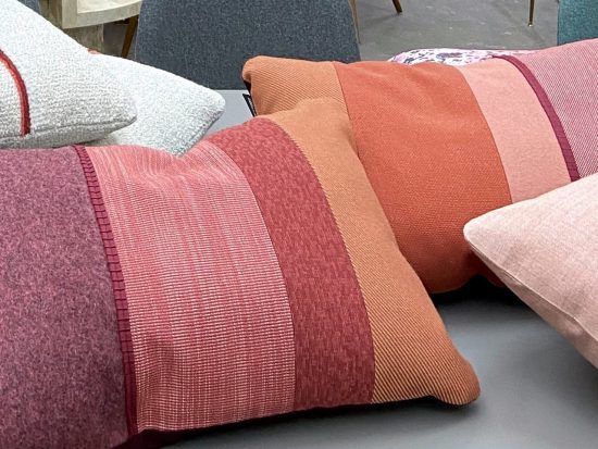 Een combinatie van een op katoen geprinte (Edammer) zonsopkomst met de verschillende kleuren van de gebruikte garens die mooi zichtbaar aan de zelfkant van de Kvadrat stof in hetzelfde kleurgamma. Deze -in mijn ogen -ambachtelijke en visueel aantrekkelijke combinatie geeft het kussen een heel eigen look and feel De hoeken van het kussen zijn licht afgerond en de rits is blind gemonteerd. We leveren dit kussen standaard met een vulling van gerecycled dons en veren.